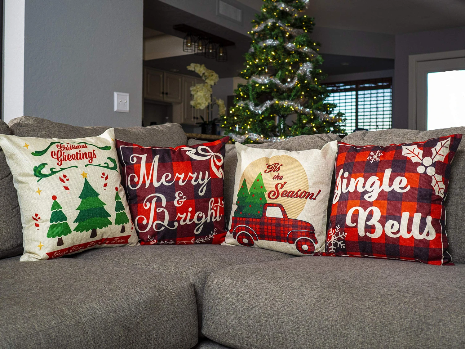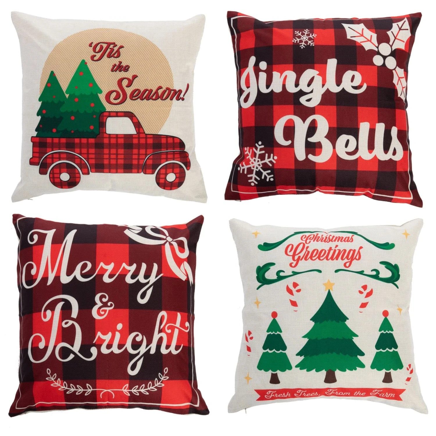- SUPER VALUE PACK. SUPER VALUE PACK. This Christmas Themed Pillow Case includes 4 Pcs of Mix Buffalo Plaid Farmhouse Christmas Pillow Covers made of Cotton Linen that measure 18″ x 18″ inches.