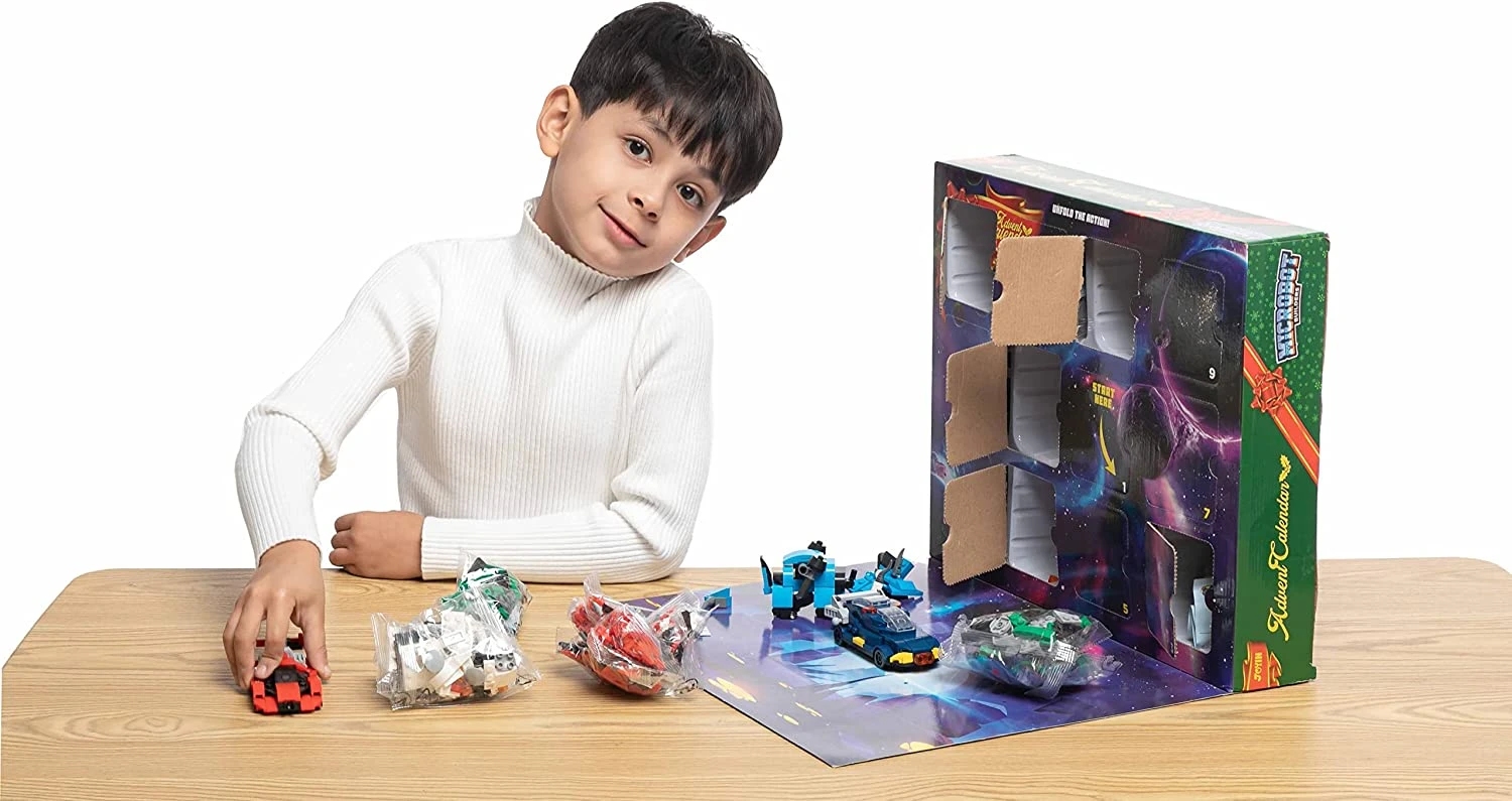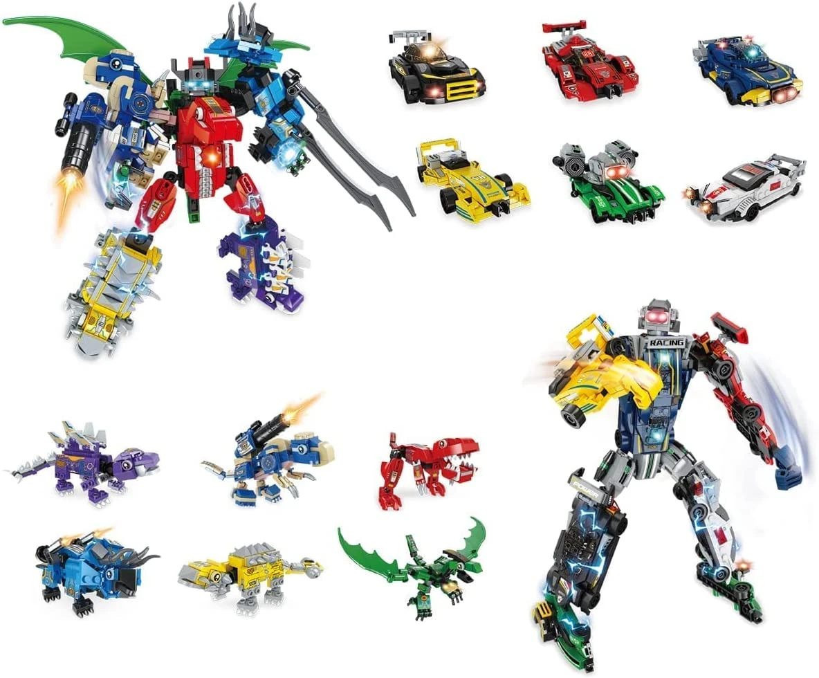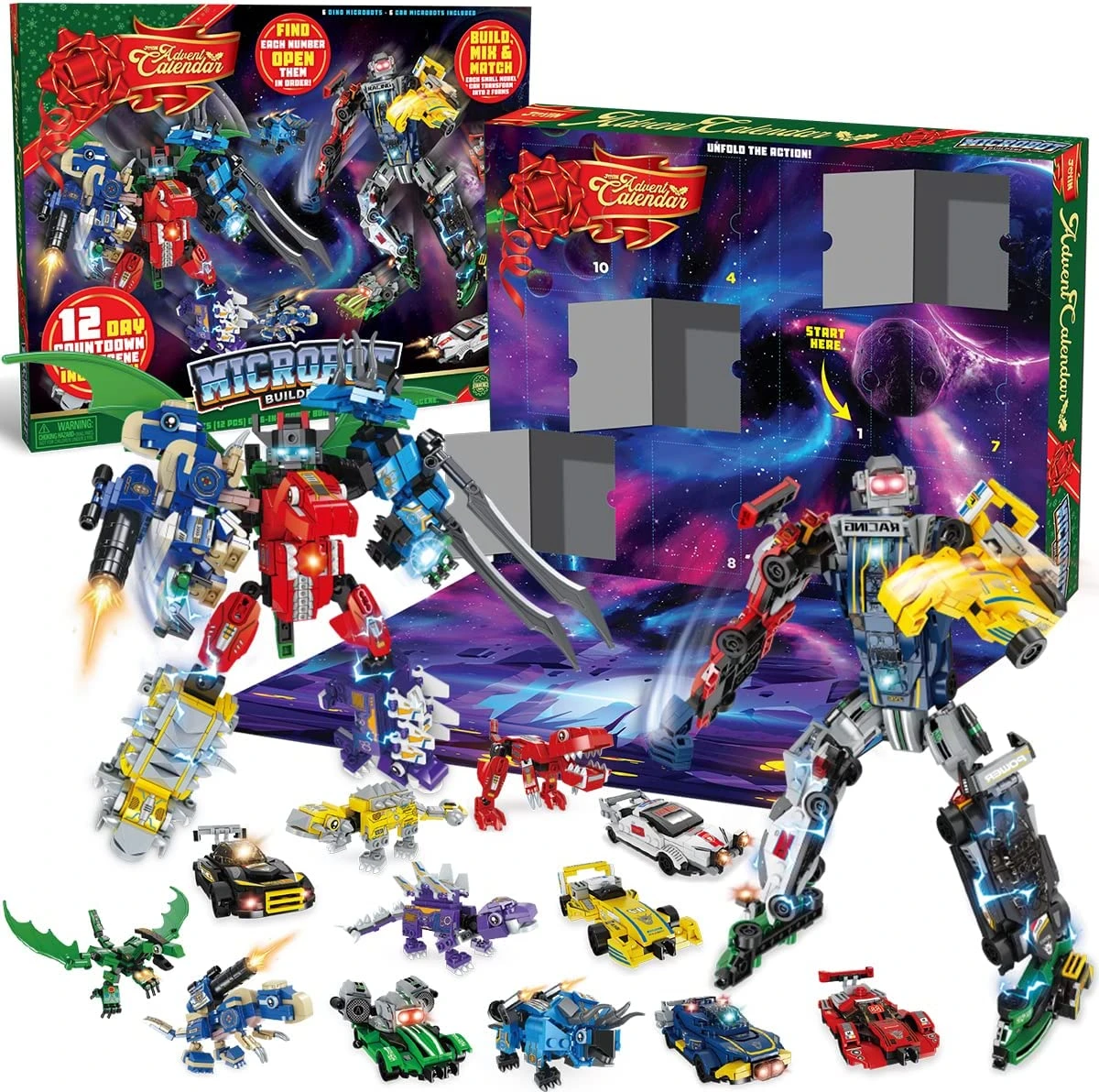 - Our Advent Calendar includes 12 Days Dinosaur Robot with Racing Car robot Building Blocks Advent Calendar Surprise. Comes with 12 building blocks, assembling into 2 fighting giant building block robots with one 6 in 1 giant dinosaur robot, 1 giant racing car robot. Each day building block robots with different forms (Playing Ground map included!)