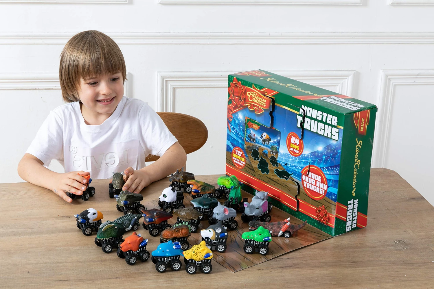 - Our advent calendar includes 24 days countdown and contains 24 pcs monster trucks