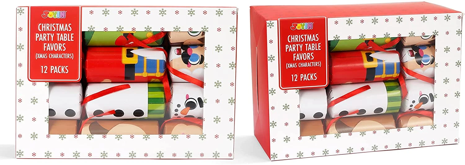 - Our holiday party favors include 12 packs of no snap Christmas characters party table favors.