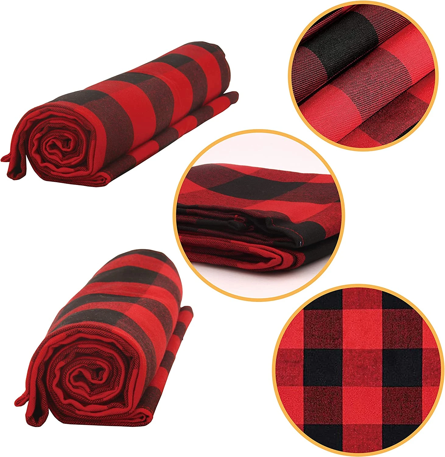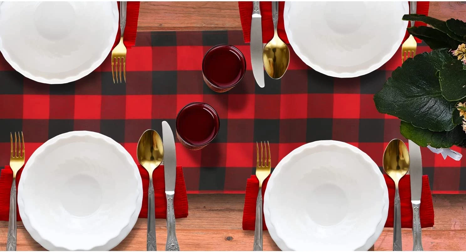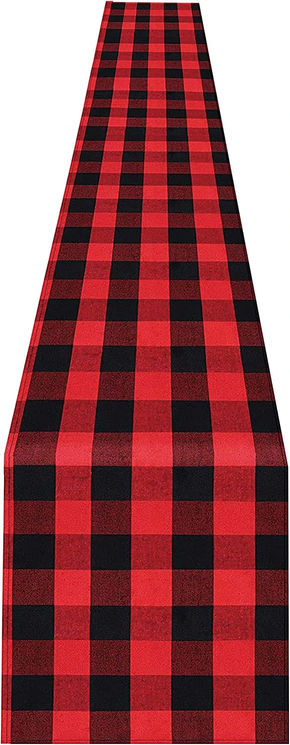 - PREMIUM QUALITY. Our Plaid Buffalo Table Runner Made of thick polyester-cotton material, classic red and black color, soft touch and highly comfortable, durable and reusable.