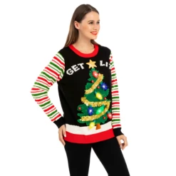 Get Lit Christmas Tree Ugly Sweater With Light Bulbs (Women)