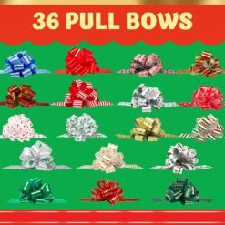 42Pcs Christmas Gift Bow Assortment, Gold Silver Green Teal And Babyblue