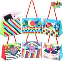 8 Christmas Designed Colorful Gift Bag With Drawstring, 24 Pcs